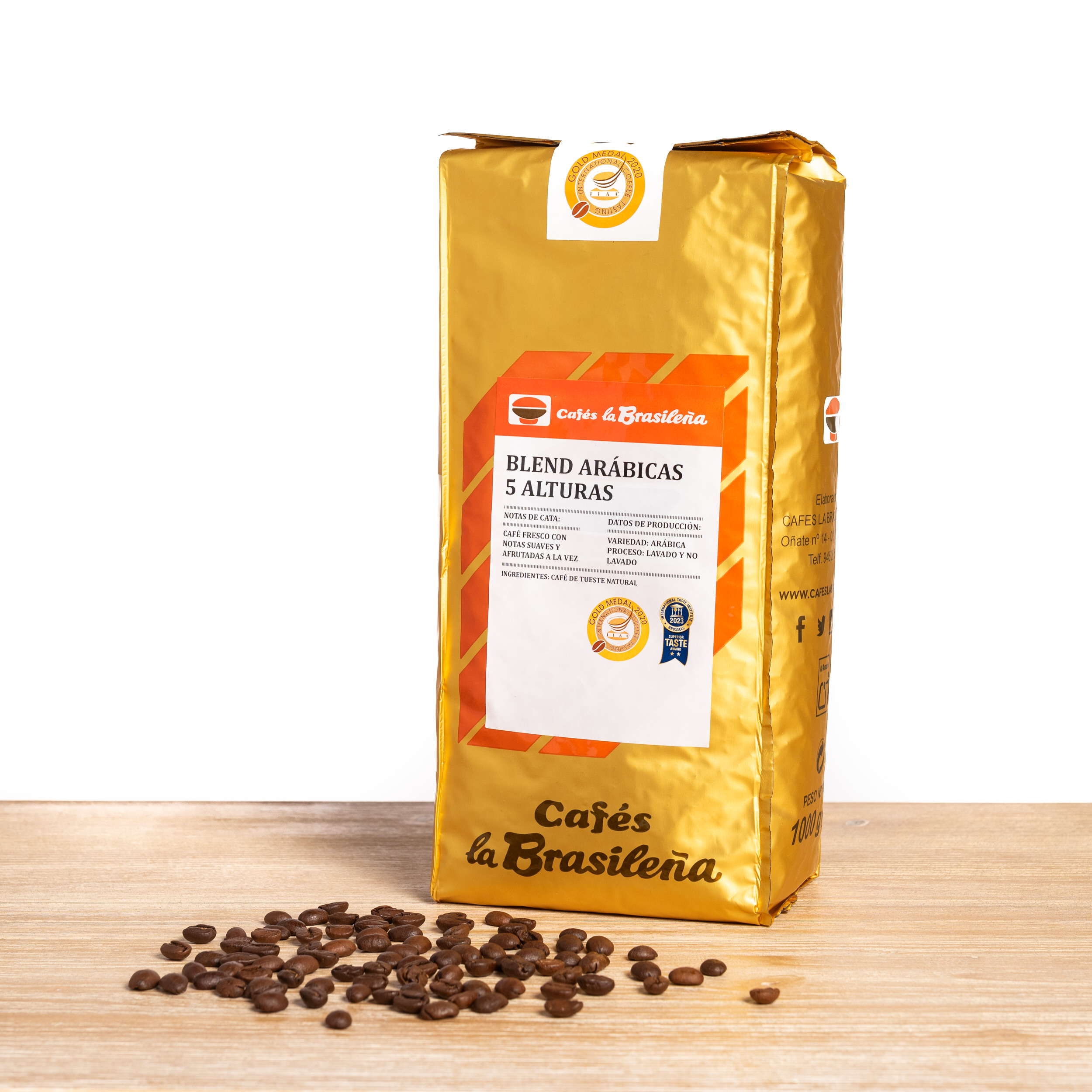 Premiado en 2018, 2019, 2020, 2021, 2023, 2024 y 2025 con dos estrellas por el International Taste Institute (ITI) en Bruselas y con la Medalla de Oro en el Internacional Coffee Tasting en Brescia (Italia) en 2008, 2014, 2016, 2018, 2020 y 2024. Se trata de un blend de cafés arábicas de altura tanto lavados como no lavados. Café 100% arábica de tueste natural. La variedad arábica es la de alta calidad comparada con la variedad robusta, básicamente porque tiene menos cafeína, sienta mejor al estómago y es mucho más valorada organolépticamente. El tueste lo hacemos en Vitoria-Gasteiz de manera natural sin azúcares. Si no dispones de molino no te preocupes, selecciona en el desplegable el tipo de cafetera que tienes y nosotr@s lo haremos justo en el último momento para que mantenga todos los aromas!