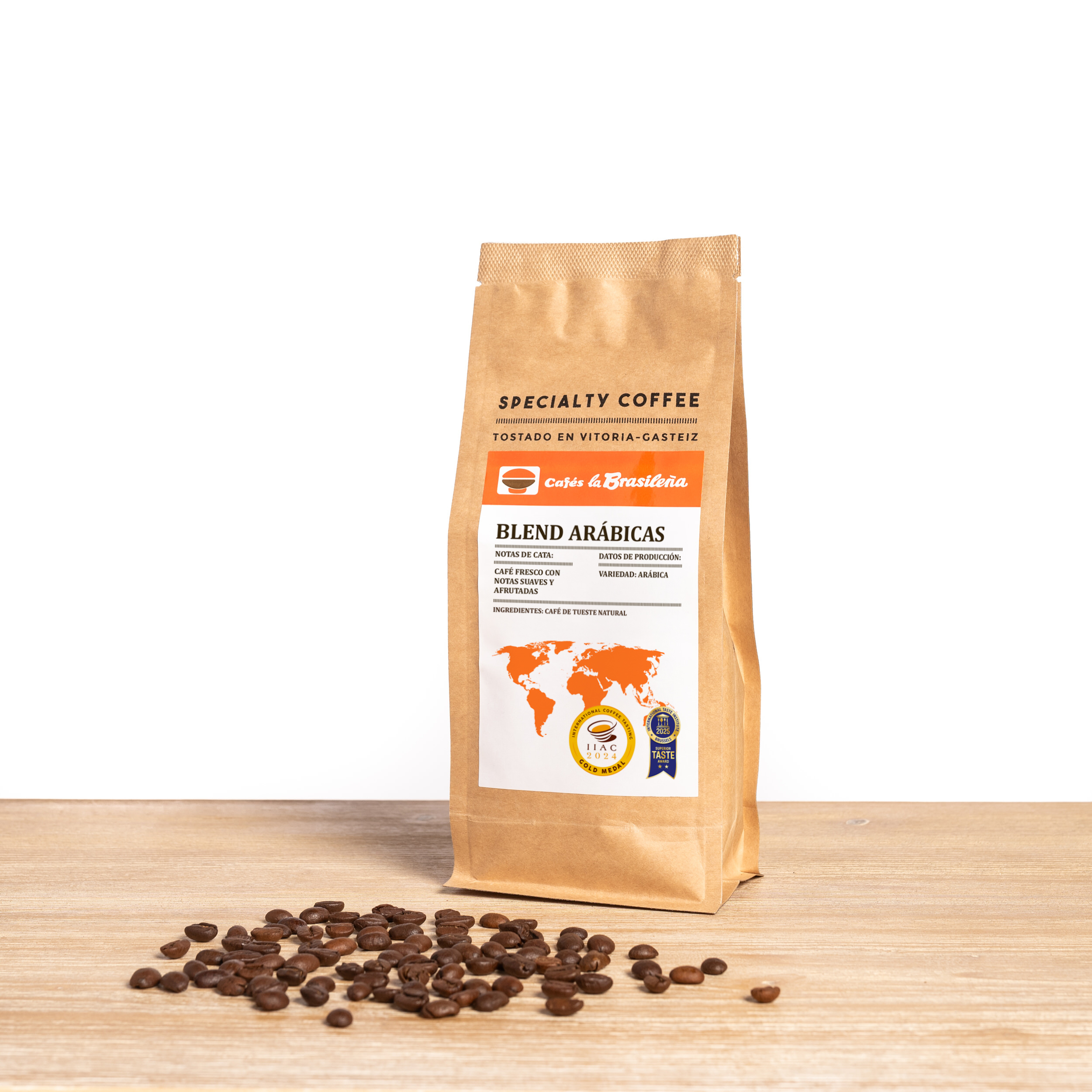 Premiado en 2018, 2019, 2020, 2021, 2023, 2024 y 2025 con dos estrellas por el International Taste Institute (ITI) en Bruselas y con la Medalla de Oro en el Internacional Coffee Tasting en Brescia (Italia) en 2008, 2014, 2016, 2018, 2020 y 2024. Se trata de un blend de cafés arábicas de altura tanto lavados como no lavados. Café 100% arábica de tueste natural. La variedad arábica es la de alta calidad comparada con la variedad robusta, básicamente porque tiene menos cafeína, sienta mejor al estómago y es mucho más valorada organolépticamente. El tueste lo hacemos en Vitoria-Gasteiz de manera natural sin azúcares. Si no dispones de molino no te preocupes, selecciona en el desplegable el tipo de cafetera que tienes y nosotr@s lo haremos justo en el último momento para que mantenga todos los aromas! ¿Cómo es el paquete? Envasamos el café en un paquete 100% reciclable, termosellado y con una válvula unidireccional que permite la salida del CO2 generado en el café después de tostado e impide la entrada de oxígeno y humedad del exterior. Una vez abierto, recomendamos consumirlo antes de un mes.